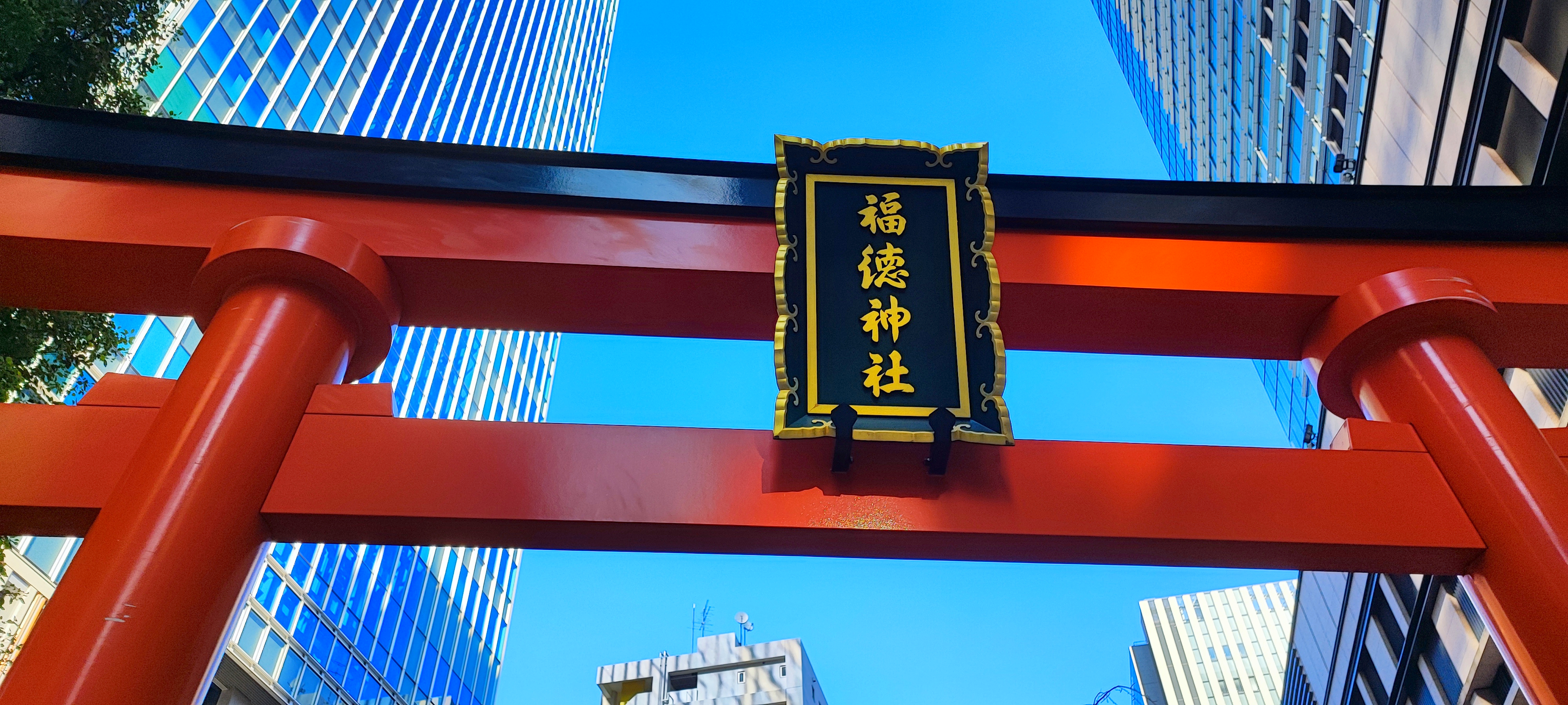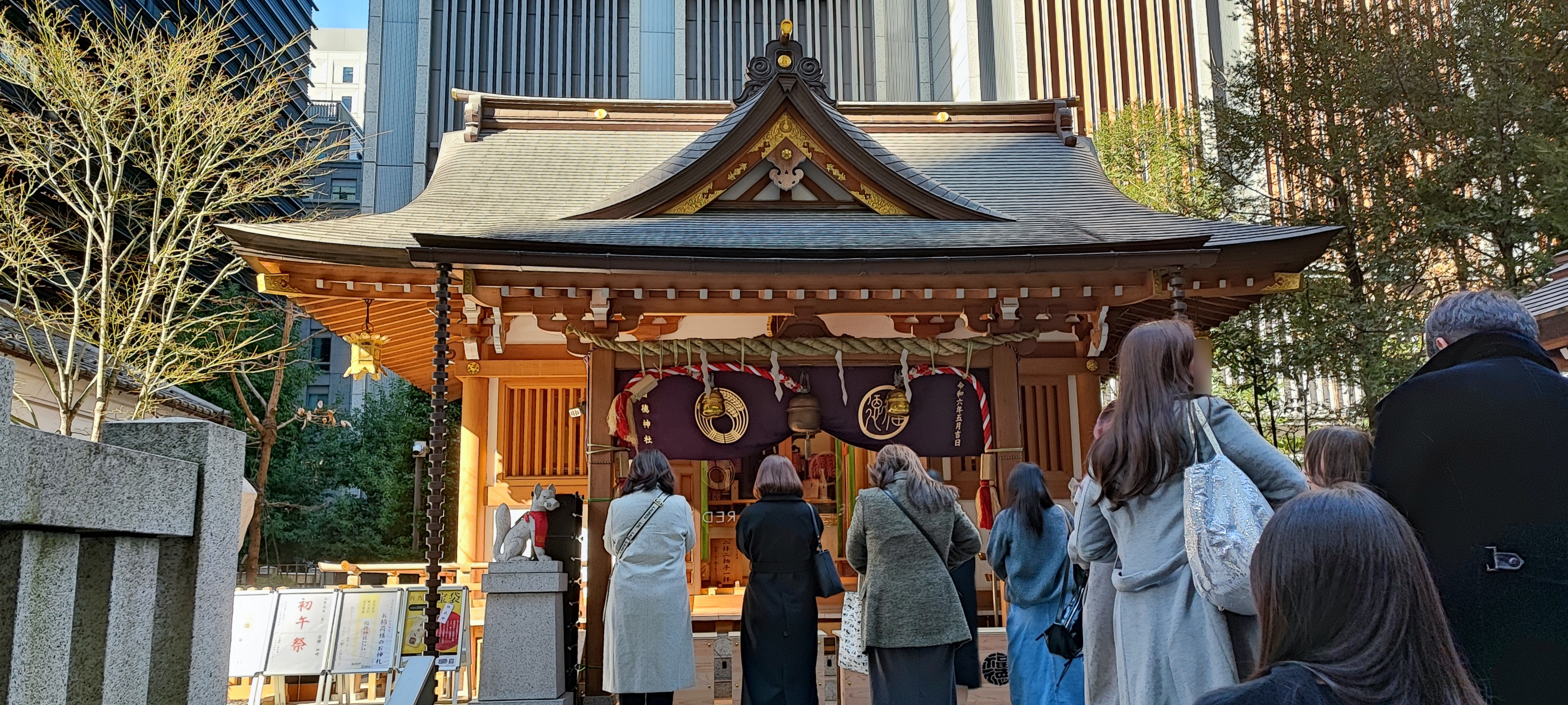 向かいにある常に混んでいる人気の福徳神社。